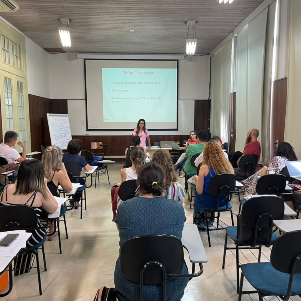 A capacitação foi destinada a membros de organizações nacionais de ATS, instituições de pesquisa acadêmicas, profissionais da indústria farmacêutica e de dispositivos médicos, profissionais atuantes em seguradoras de saúde, profissionais da área da saúde, economistas, estatísticos e pós-graduandos em áreas afins. As pesquisadoras do IATS Miriam Zago e Nayê Balzan participaram do evento de forma presencial.
